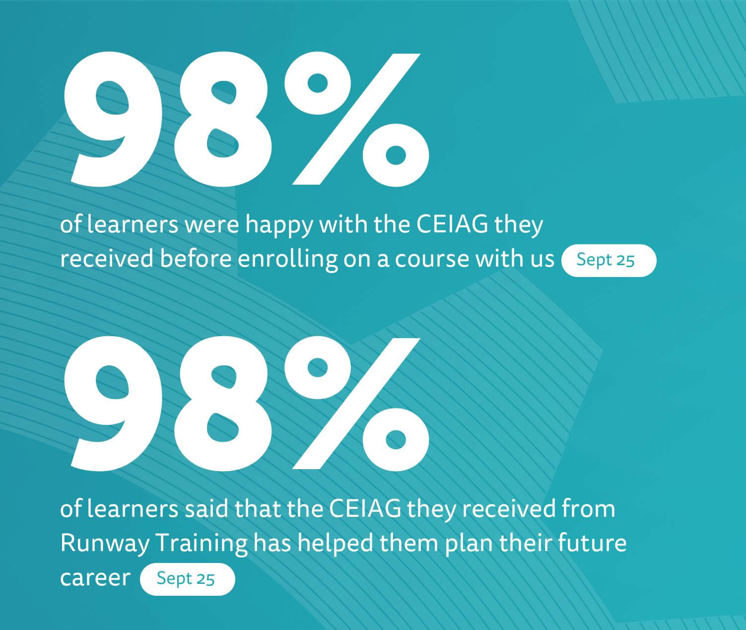 Runway Training have a team of trained staff in Information, Advice & Guidance, ready to provide free, confidential, impartial support in all aspects of your future progression and development to help you to make well-informed decisions.