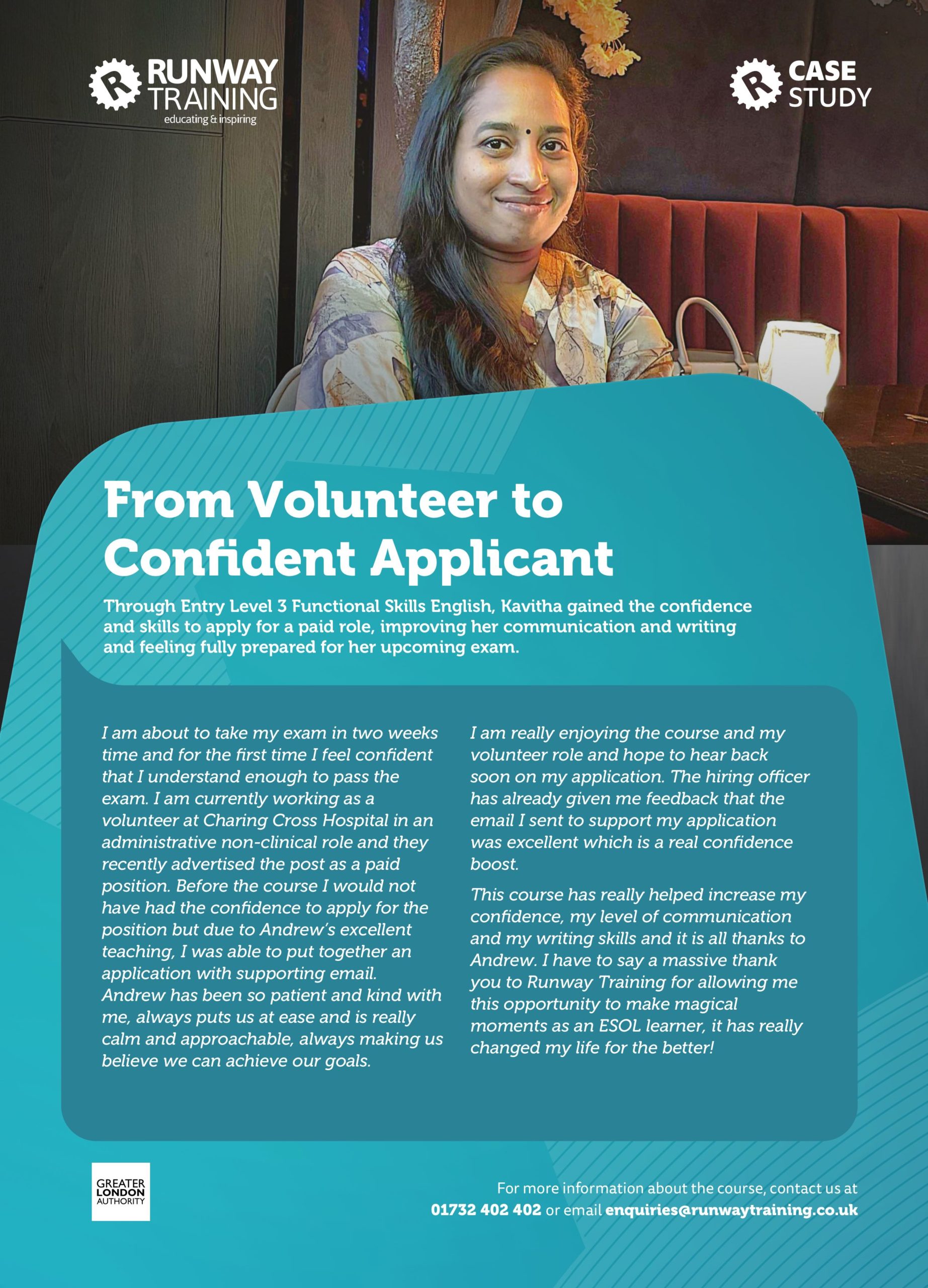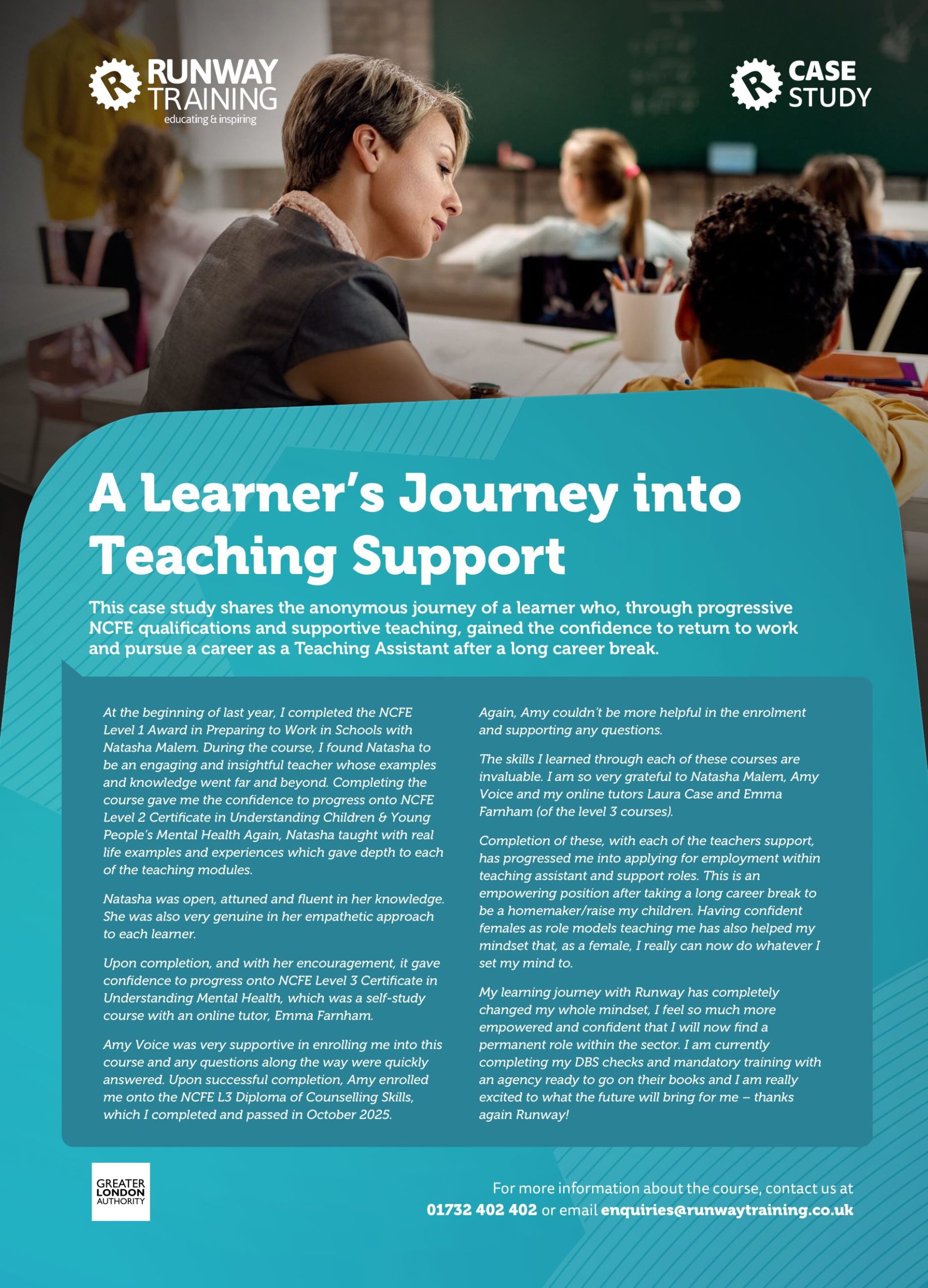 Read about Karlene, who followed the Teaching Assistant Pathway, to see how training with Runway helped her gain confidence, qualifications, and a new career supporting young learners.